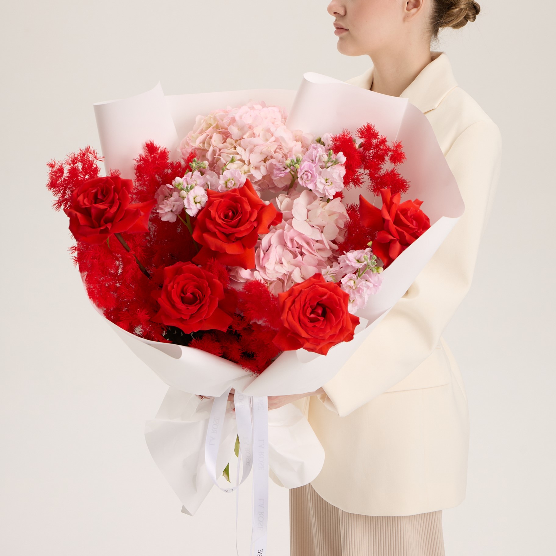 Свежие цветы от La Rose доставляются в фирменной коробке и вазе. Переставьте букет из аквабокса в вазу с водой, предварительно подрезав стебли под углом. Меняйте воду ежедневно, обновляя срез. На 2-3-й день можете добавить наш порошок. Используйте холодную воду и добавляйте лёд для лучшего эффекта. Держите цветы вдали от отопителей, солнца и фруктов — они вредят растениям.