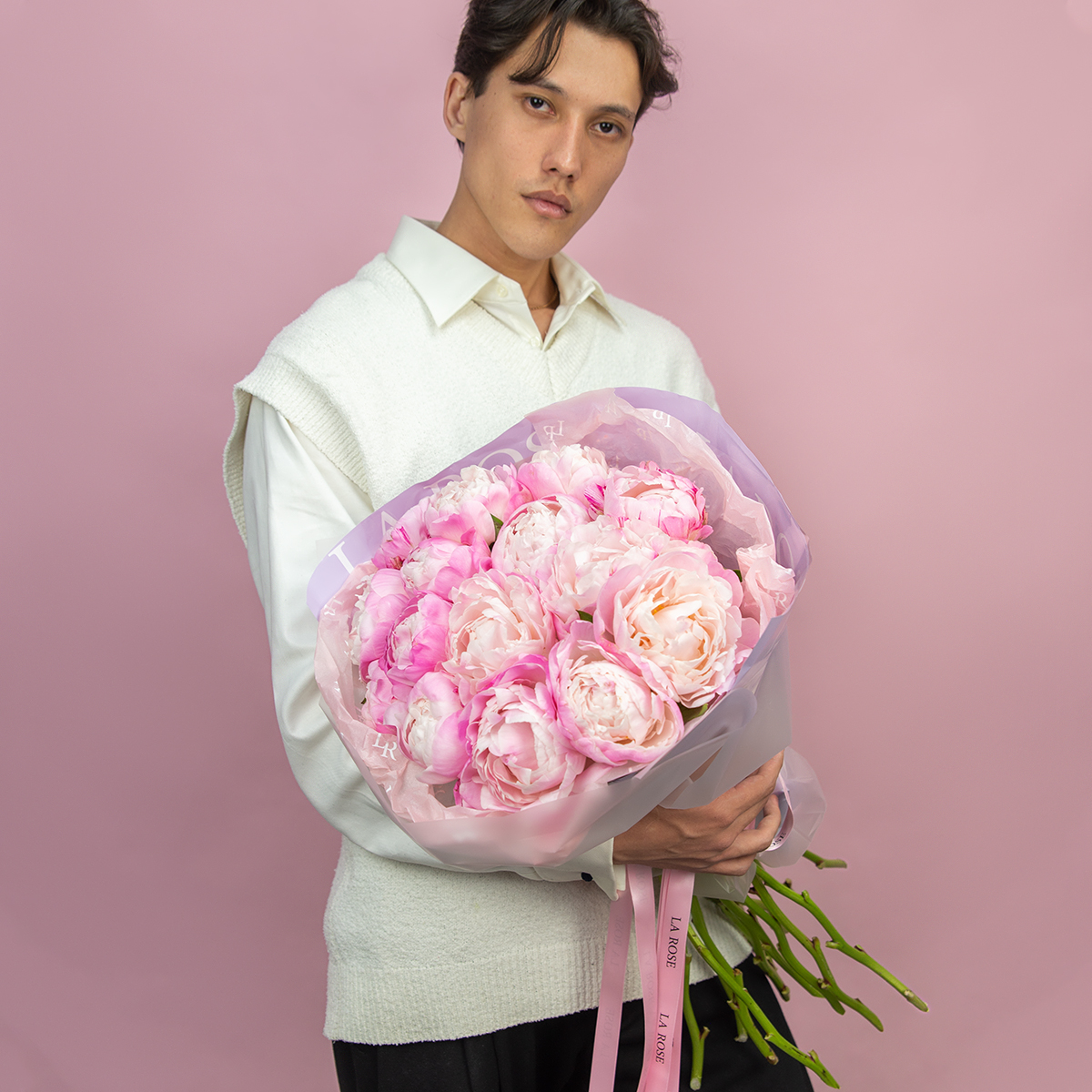 Свежие цветы от La Rose доставляются в фирменной коробке и вазе. Переставьте букет из аквабокса в вазу с водой, предварительно подрезав стебли под углом. Меняйте воду ежедневно, обновляя срез. На 2-3-й день можете добавить наш порошок. Используйте холодную воду и добавляйте лёд для лучшего эффекта. Держите цветы вдали от отопителей, солнца и фруктов — они вредят растениям.