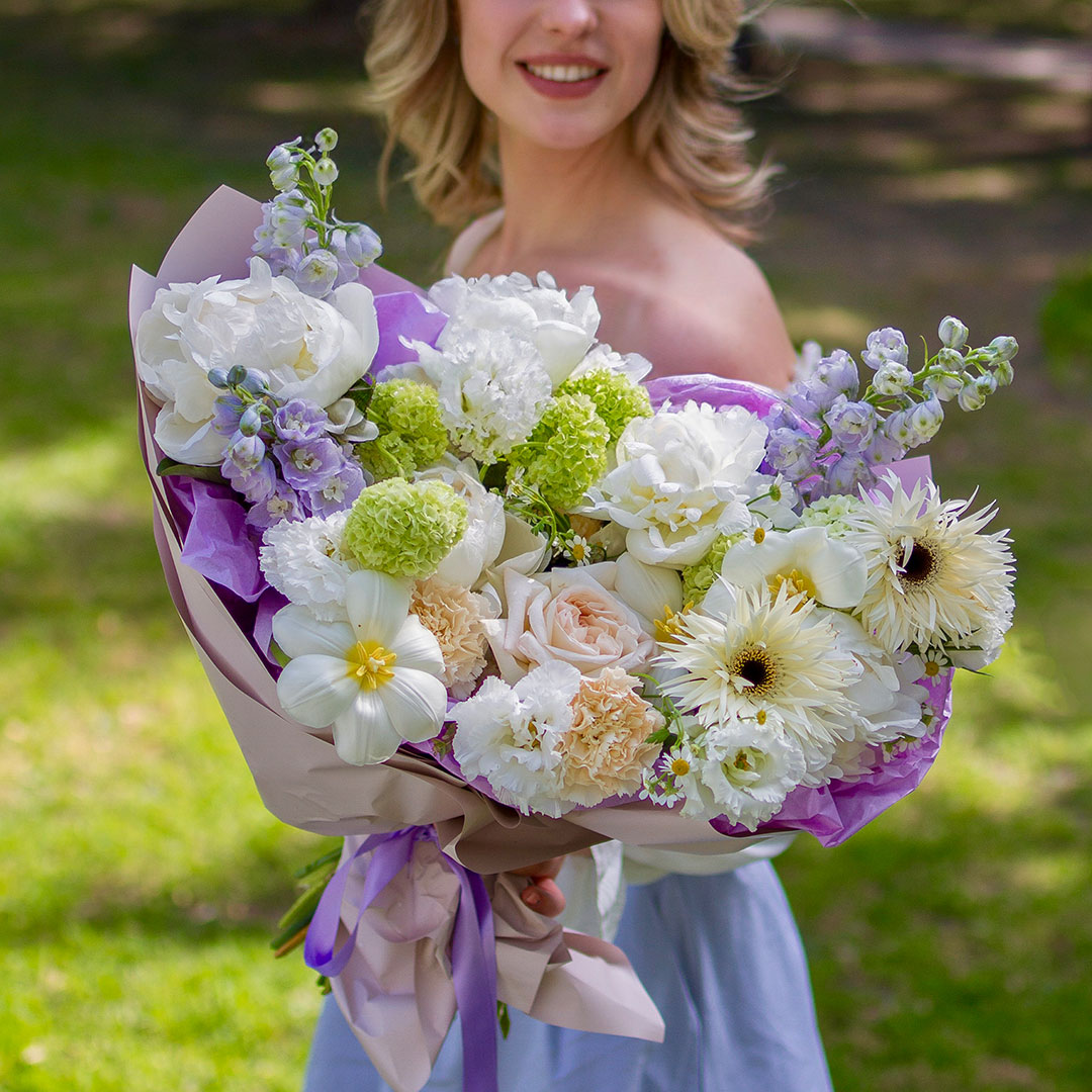 Некоторые цветы в этом букете отсутствуют из-за повышенного спроса или сезонности. Мы ГАРАНТИРОВАННО подберем равноценную альтернативу, сохраняя стиль и цветовую гамму букета. Стоимость и дизайн композиции согласовываются с вами до оплаты заказа. Ваше удовлетворение нашей работой — наш главный приоритет!