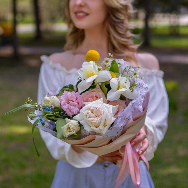 Некоторые цветы в этом букете отсутствуют из-за повышенного спроса или сезонности. Мы ГАРАНТИРОВАННО подберем равноценную альтернативу, сохраняя стиль и цветовую гамму букета. Стоимость и дизайн композиции согласовываются с вами до оплаты заказа. Ваше удовлетворение нашей работой — наш главный приоритет!