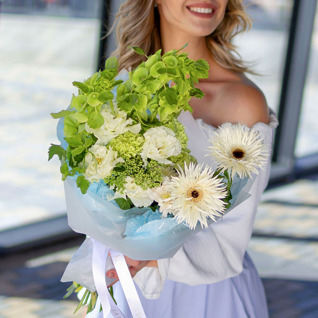 Свежие цветы от La Rose доставляются в фирменной коробке и вазе. Переставьте букет из аквабокса в вазу с водой, предварительно подрезав стебли под углом. Меняйте воду ежедневно, обновляя срез. На 2-3-й день можете добавить наш порошок. Используйте холодную воду и добавляйте лёд для лучшего эффекта. Держите цветы вдали от отопителей, солнца и фруктов — они вредят растениям.