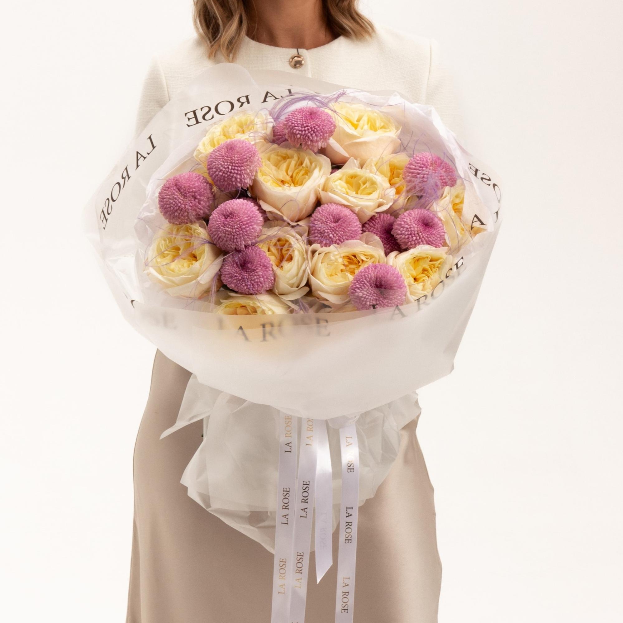 Букет с розой Фатима и хризантемой Момоко