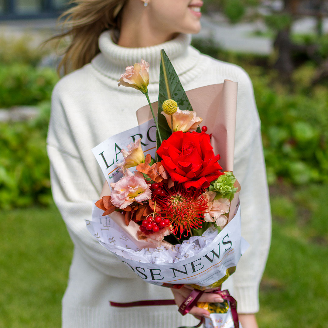 Свежие цветы от La Rose доставляются в фирменной коробке и вазе. Переставьте букет из аквабокса в вазу с водой, предварительно подрезав стебли под углом. Меняйте воду ежедневно, обновляя срез. На 2-3-й день можете добавить наш порошок. Используйте холодную воду и добавляйте лёд для лучшего эффекта. Держите цветы вдали от отопителей, солнца и фруктов — они вредят растениям.