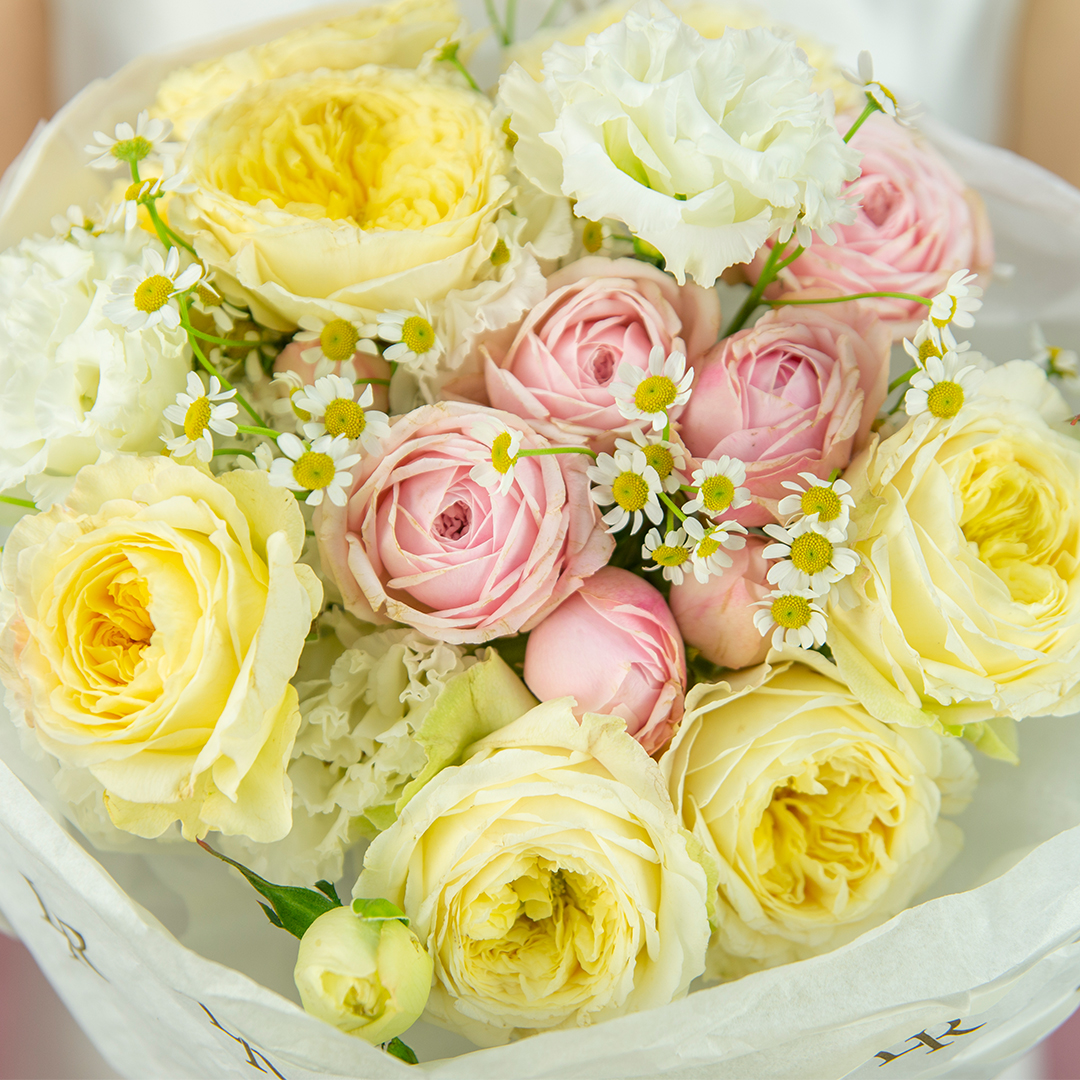 Свежие цветы от La Rose доставляются в фирменной коробке и вазе. Переставьте букет из аквабокса в вазу с водой, предварительно подрезав стебли под углом. Меняйте воду ежедневно, обновляя срез. На 2-3-й день можете добавить наш порошок. Используйте холодную воду и добавляйте лёд для лучшего эффекта. Держите цветы вдали от отопителей, солнца и фруктов — они вредят растениям.