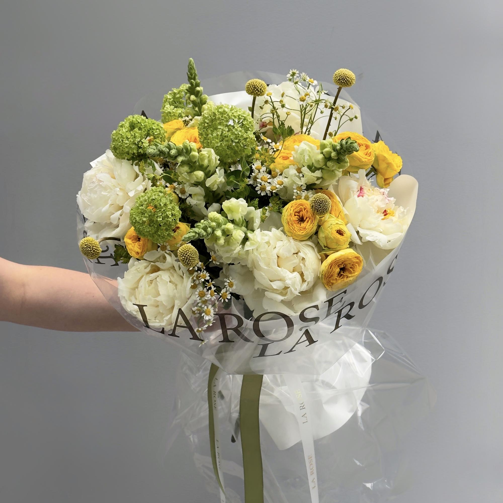 Некоторые цветы в этом букете отсутствуют из-за повышенного спроса или сезонности. Мы ГАРАНТИРОВАННО подберем равноценную альтернативу, сохраняя стиль и цветовую гамму букета. Стоимость и дизайн композиции согласовываются с вами до оплаты заказа. Ваше удовлетворение нашей работой — наш главный приоритет!