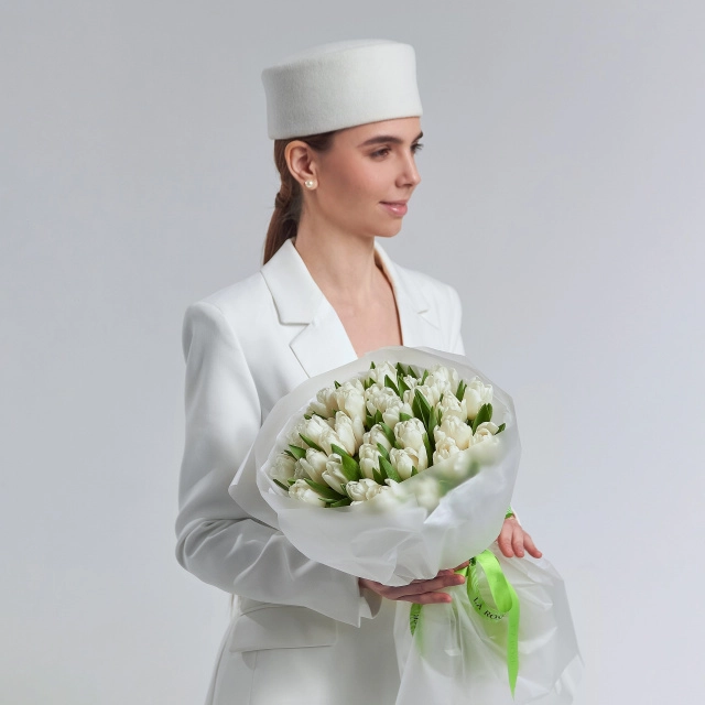 Букет белых тюльпанов