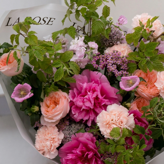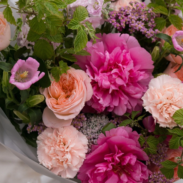 Летний букет с малиновыми пионами