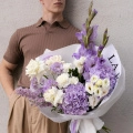 Букет с гортензией бенефит лавандер и белоснежной розой