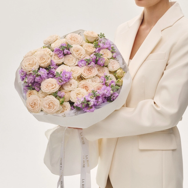 Некоторые цветы и материалы являются сезонными и могут быть недоступны в данный момент, поэтому мы оставляем за собой авторское право определять конечный состав букета.