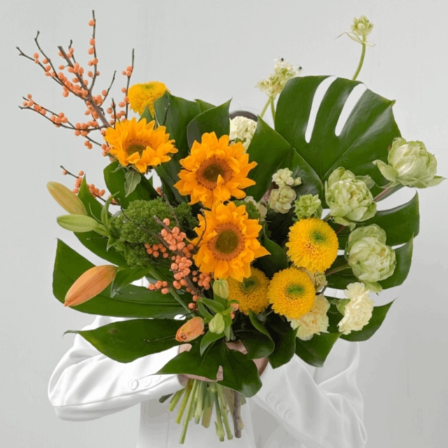 Букет с подсолнухами и монстерой