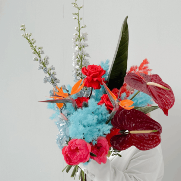 Букет со стрелицией и пионами