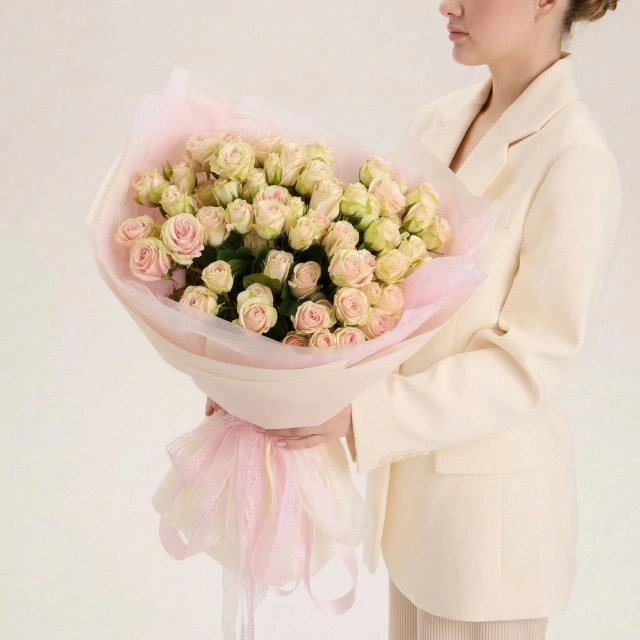 Монобукет из кустовой розы Ириска, 15 шт