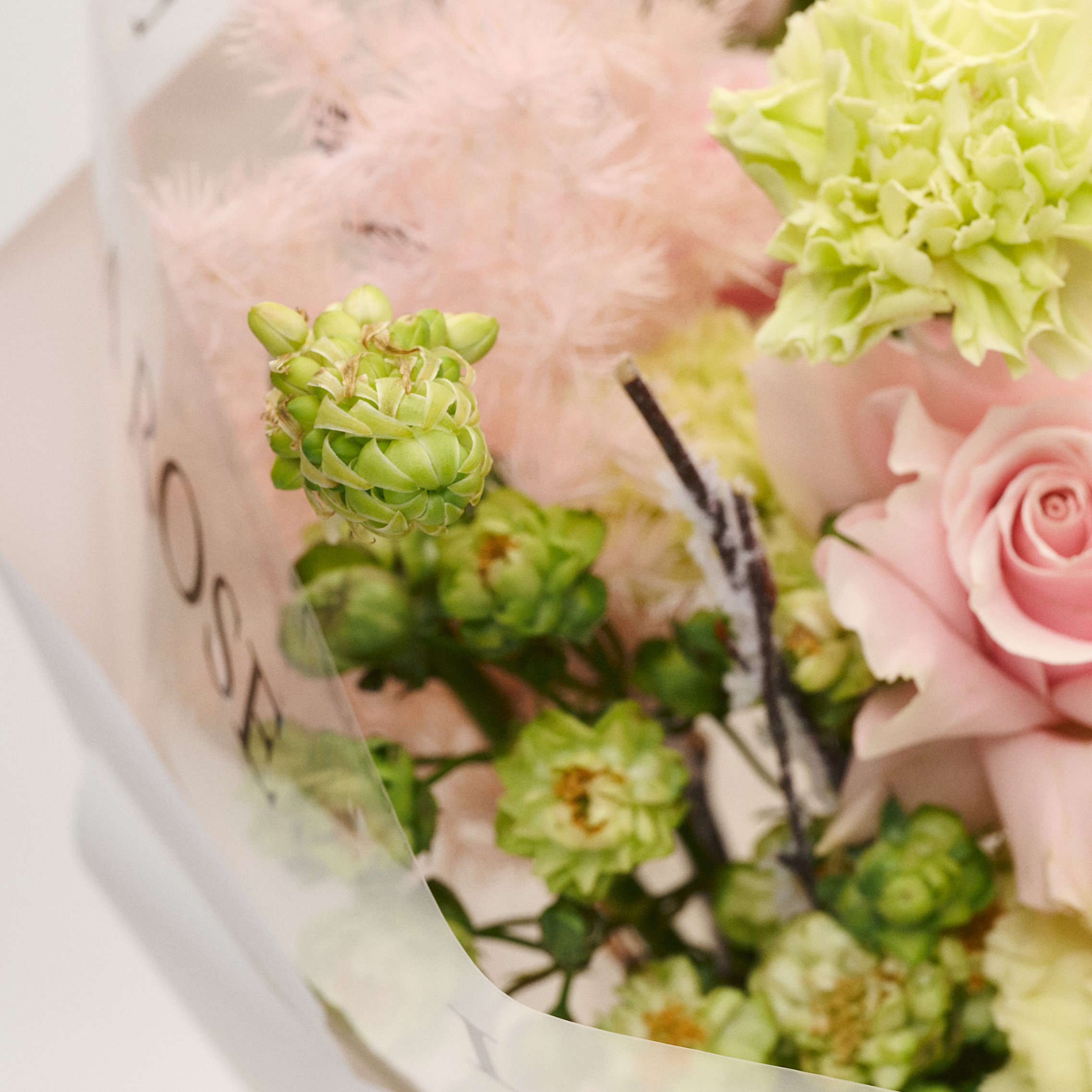 Свежие цветы от La Rose доставляются в фирменной коробке и вазе. Переставьте букет из аквабокса в вазу с водой, предварительно подрезав стебли под углом. Меняйте воду ежедневно, обновляя срез. На 2-3-й день можете добавить наш порошок. Используйте холодную воду и добавляйте лёд для лучшего эффекта. Держите цветы вдали от отопителей, солнца и фруктов — они вредят растениям.