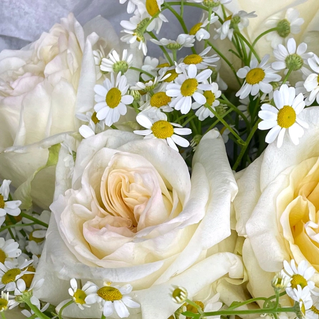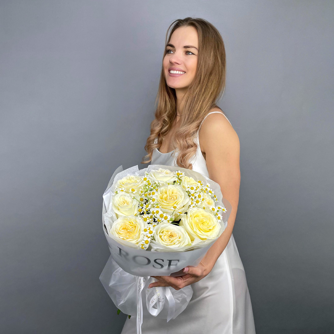 Пионовидная роза с матрикарией
